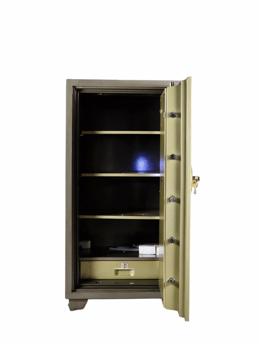 مصنوعة من الفولاذ المقاوم للحرائق و الرصاص ، وزن 250 كجم مما يجعلها مثالية لحماية الممتلكات