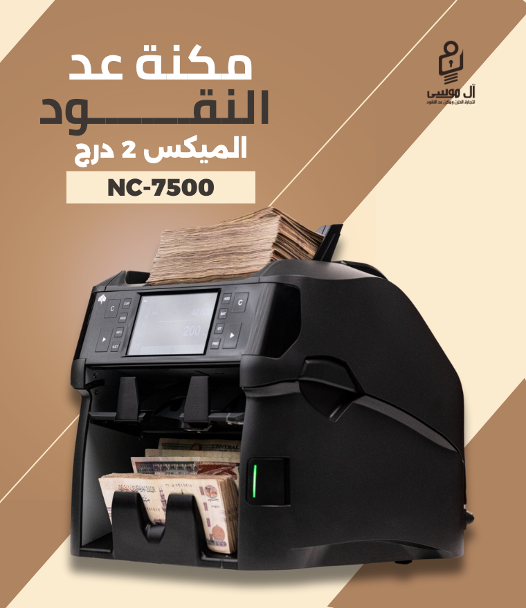 ماكينة عد النقود NC 7500 تايوانية معتمدة من البنك الأهلي والمركزي، تكشف التزوير بنسبة 100٪ وتدعم أنظمة الفرز والعد المختلط بشاشة تاتش ذكية.