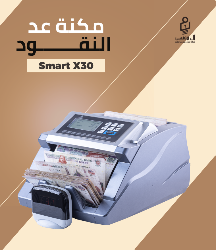 مكنة عد النقود SMART-X-30 بكشف تزوير عالي، تدعم عد عملات مختلفة، تقسيم بواكي ورزم، وتجميع القيمة (VALUE). ضمان عام وتوصيل مجاني لجميع المحافظات