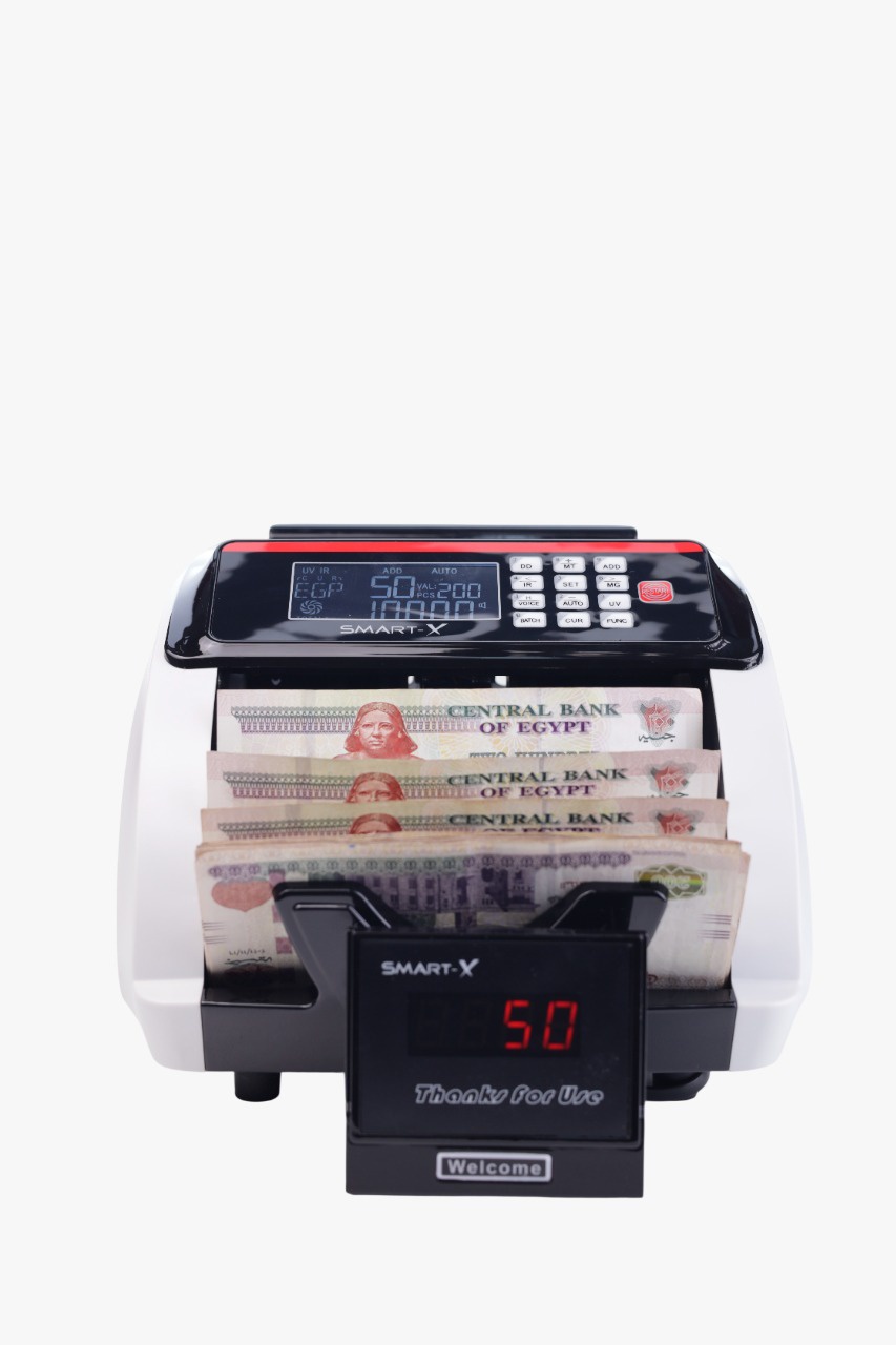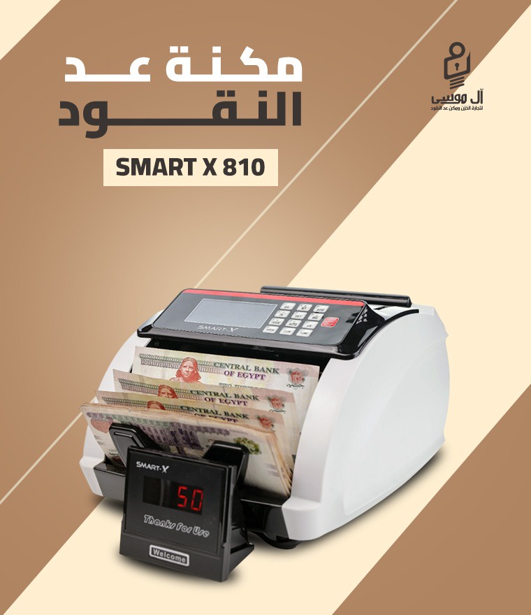 مكنة عد النقود Smart X-810 بكشف تزوير عالي، تدعم عد عملات مختلفة، تقسيم بواكي ورزم، وتجميع القيمة (VALUE). ضمان عام وتوصيل مجاني لجميع المحافظات!