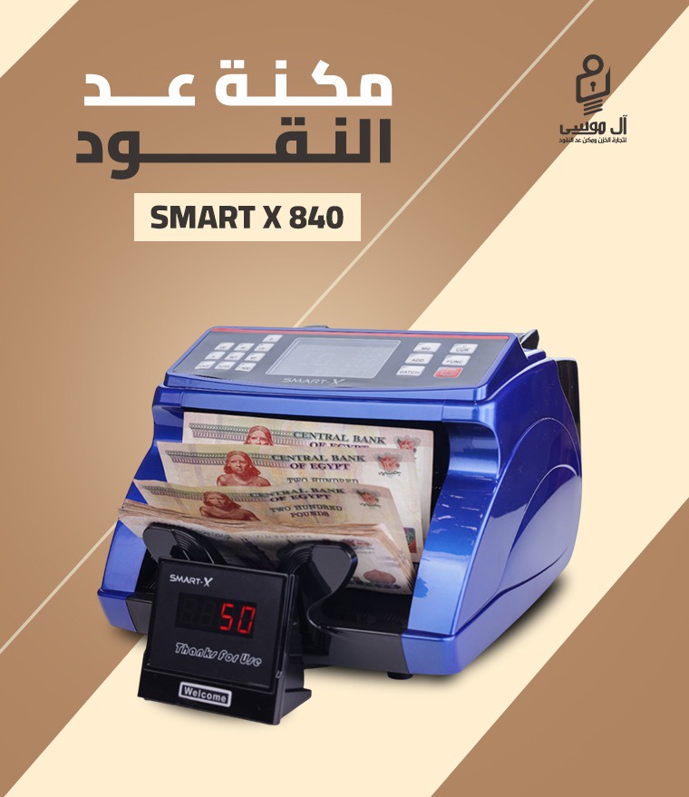 مكنة عد النقود Smart X-840 بكشف تزوير عالي، تدعم عد عملات مختلفة، تقسيم بواكي ورزم، وتجميع القيمة (VALUE). ضمان عام وتوصيل مجاني لجميع المحافظات!