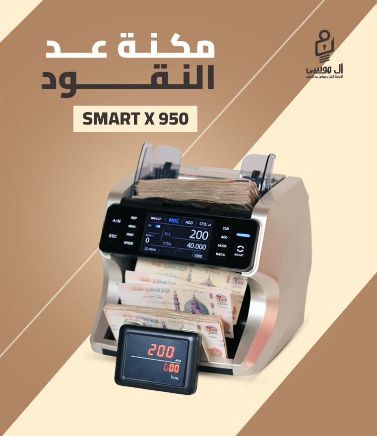ماكينة عد النقود Smart X 950 توفر أعلى مستوى من الدقة والكفاءة في عد وفرز النقود، ومناسبة للبنوك والشركات التي تتعامل مع كميات كبيرة من النقد والعملات المختلفة.